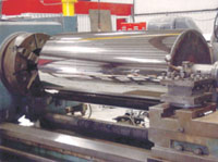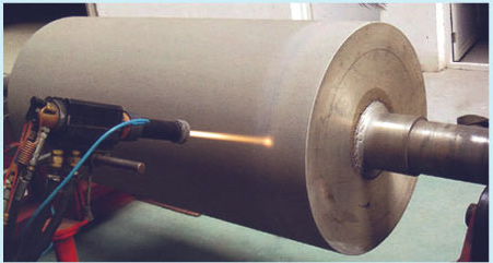 造紙機械設備各類輥子的磨損、劃傷、刮傷等缺陷問題是制約紙品的主要因素,高速頻繁運轉的石頭輥可用鋼制輥表面噴涂氧化物陶瓷或金屬復合陶瓷材料,替代抄紙機石頭輥、且不受頻繁高速使用。又如機器軋光輥和刮板的粘著磨損,水修整環的腐蝕,光澤壓光輥的表面光潔度下降,頂壓輥、上漿輥、后干燥輥、纏卷鼓等出現的機械磨損。均可通過熱噴涂工藝加工技術解決。同時可數倍的提高造紙機械部件的使用壽命。